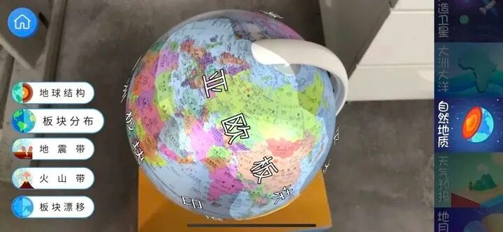 AR的功能相对简单,用手机扫描时,镜头里的地球仪会呈现出对应的内容。但这些内容在镜头中不太容易看清,所以当继续转动地球仪,手机屏幕上就会显示出更清晰的内容,并且不会随着镜头的移动而发生变化。