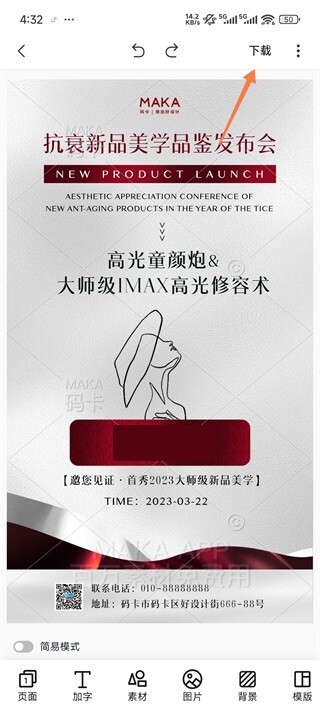 MAKA设计安卓版的界面简洁又友好,操作起来很简单,你只要通过拖拽就能完成设计,不需要复杂的学习步骤,短时间内就能上手,做出精美的作品。设计的时候还能随时预览效果,方便及时调整优化,作品完成后可以一键分享到微信、微博等社交平台。