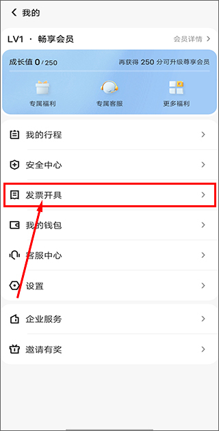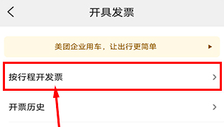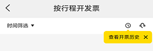 在当前页面,您可以选择“按行程开发票”选项;若需查看所有的开票记录,点击“开票历史”即可。