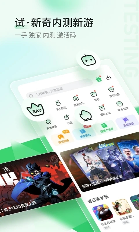 好游快爆是一款为游戏爱好者量身打造的专属平台。平台内汇聚了海量游戏资源,无论是卡牌、策略、动作、射击类游戏,还是养成、模拟、经营、冒险等类型,这里一应俱全,能全方位满足你的各类游戏需求。软件不仅收录了最新、最全、最热门的游戏,还为用户提供独家体验服测试资格,让你在游戏正式发布前就能抢先体验新奇与刺激。此外,好游快爆更是一个融合了游戏资讯、攻略、活动等功能的综合性平台。