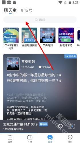 在互动界面,我们能够通过顶部的搜索栏去查找自己想要加入的广播聊天室。