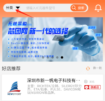 在元器件商城里,你能挑选心仪的商品。点击左上角的分类选项,就能按照分类进行筛选。
