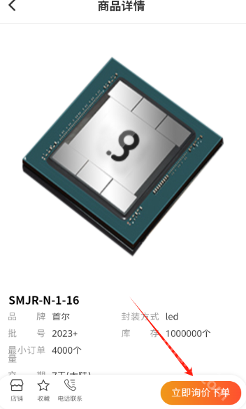 然后进到店铺详情页,点击立即询价下单即可购买。