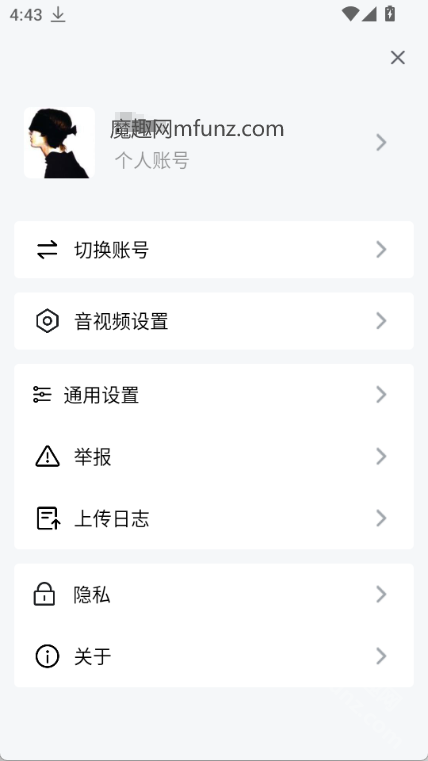 点击头像即可进入个人中心,在个人中心里能够切换账号,还可以进行音视频设置、通用设置等操作。