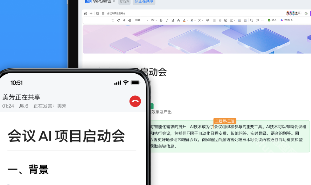 WPS会议支持在手机、电脑、Web及小程序等多平台上快速发起和加入会议,入会过程便捷高效,无需额外等待时间。