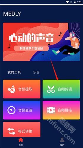 打开音频剪辑软件Medly,点击“音频剪辑”