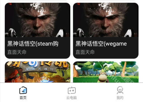 在大神云电脑里搜索《黑神话:悟空》,然后挑选和自己设备相匹配的游戏版本。