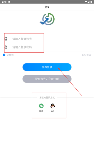在登录页面,您可以选择输入账号和密码后点击“立即登录”按钮,也可以通过微信、QQ等第三方平台进行登录。
