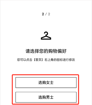 接着打开应用程序,再依据购物的实际需求挑选对应的偏好设置选项,像男士和女士这类选择项。