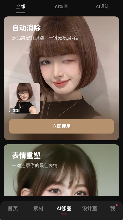 美图秀秀是一款备受欢迎的手机影像处理应用,我们能对照片里的人像进行磨皮祛痘、瘦脸瘦身等修饰,轻松打造出宛如天使般的精致面容,让每一个瞬间都绽放光彩!它还提供了丰富多样的饰品与贴纸等装饰素材,若偏爱动漫风格,可添加更多卡通人物贴纸;要是喜欢动物元素,也能选用动物特效。美图秀秀手机版更具备调整照片尺寸,或是将一张图片叠加到另一张图片上的功能。