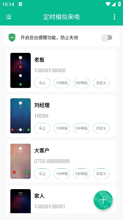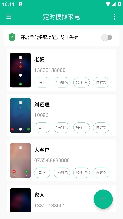 3、后台定时来电:用户可便捷设置在指定时间接收模拟来电,无需手动干预,系统自动执行,高效省心。