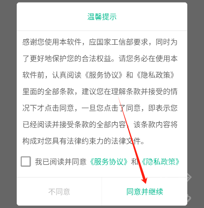 首先在魔趣网(m.mfunz.com)下载并安装定时模拟来电软件,然后点击“同意并继续”进入软件。
