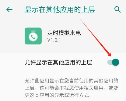 需要注意的是,若要正常使用该软件的模拟来电功能,需勾选“允许显示在其他应用的上层”这一权限。