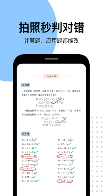 手机拍摄小学作业,一秒完成检查。