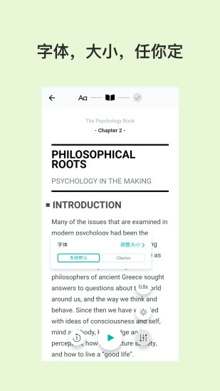 这里有4种主题可供你选择,不同的色彩风格能让你体验不一样的学习氛围;语速方面提供了多种选项,你可以完全按照自己的水平来调整;阅读字体的大小和颜色也都能一键设置好,期待你的到来。