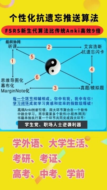 Anki资源库是借助间隔重复机制来对抗遗忘的学习工具,相比传统Anki的旧有使用方式效率提升9倍;它在艾宾浩斯遗忘曲线原理基础上进一步优化,融入FARS参数,通过智适应抗遗忘规律,助力用户依靠定期复习强化记忆。这一方法已得到数十万学子验证,能明显提升记忆效率与长期记忆的留存效果。
