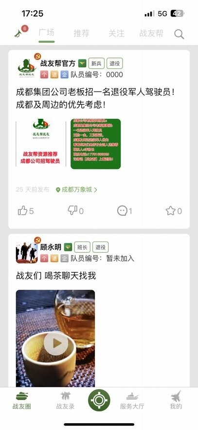 软件设有“战友圈”板块,该板块内包含丰富的动态内容,用户能够随时进行浏览查看。