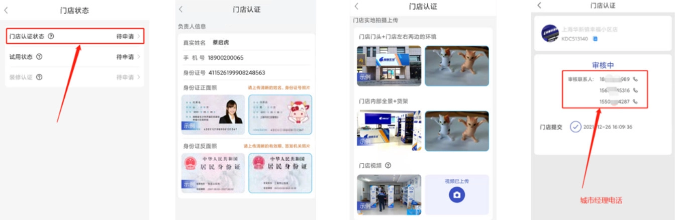 注意事项1、试用账号只能使用7天,7天后需重新门店认证,否则账号自动关停2、试用账号只需要清晰上传身份证正反面;3、门店认证所需资料:身份证正反面、门头+门店左右两边环境、门店内景+货架、店内视频4、门头+门店左右两边环境要照全;5、门店内景+货架要照清楚店内景墙顶地+最少一组快递货架6、店内视频要照清楚店内的情况,时长10S,7、易错点:门店名称一定要按照规则命名按照“城市(不含市字)+区/县(不含区、县字)+服务区域+店字”填写
