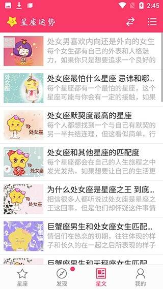点击底部的星文,就能查看最新的星座资讯文章,从而更详细地了解相关星座。