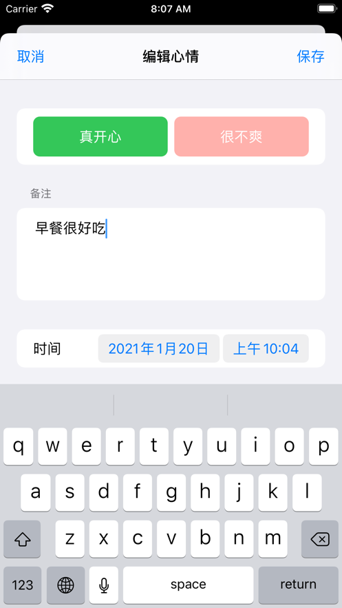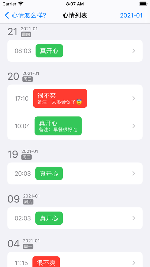 非常简单的管理模式,您可以根据时间创建自己的情绪变化手册,心情跟踪和记录方法确实很方便。