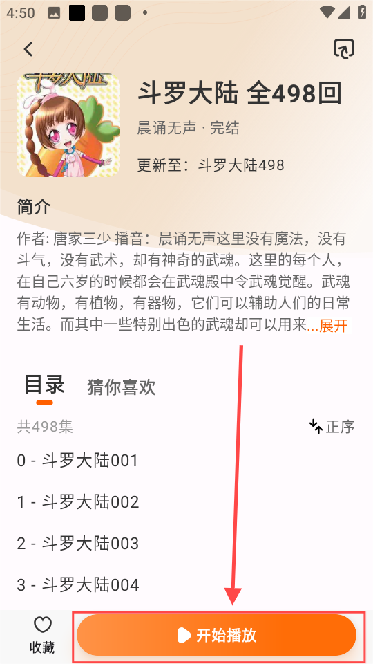 3、挑选一本感兴趣的书籍开启试听,这里用人气作品《斗罗大陆》来举例说明。