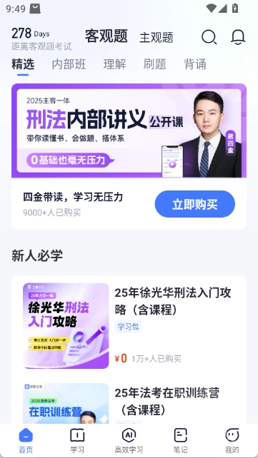 觉晓法考是一款专为法考生打造的在线学习软件,平台内不仅配备了海量真题题库,能助力大家更全面地覆盖考点,还提供智能批改与随练批改功能;此外,还有免费的名师公开课可供学习。若条件允许,你也可以加入内部班,由专业老师进行保姆式带学,让学习效率更高、更能直击考点,准备参加法考的朋友可千万别错过!