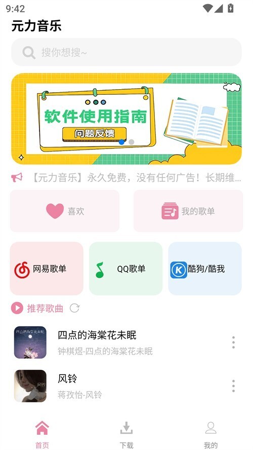 元力音乐是一款专为音乐爱好者打造的免费音乐播放工具。软件为用户提供了海量可收听的音乐歌曲资源,涵盖多种音乐类型,所有资源均为正版且可免费收听。此外,用户还能在软件中导入本地音乐进行在线播放,平台也提供了丰富的热门音乐榜单。有需要的话,欢迎在本站使用。