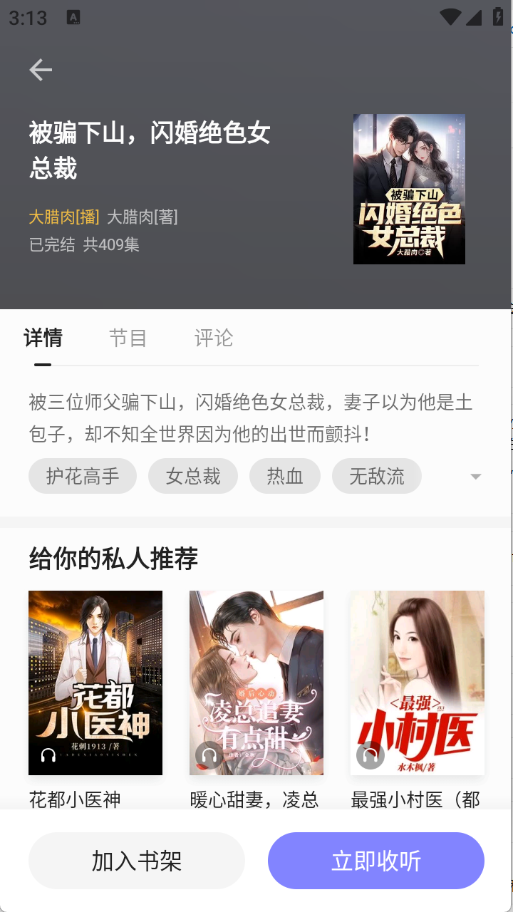 2、找到你喜欢的有声小说后,就能播放其音频,通过听书的形式来“阅读”小说里的故事内容。