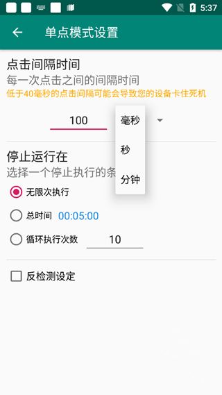 2、借助设置功能,能够对连点的间隔时长与执行次数进行调整,间隔时长越短,连点的频率就会越高。