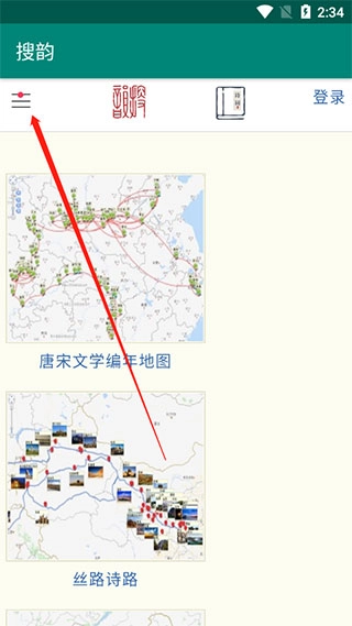 1、在本站下载并安装搜韵诗词门户网站的手机版应用,打开软件后进入主界面;