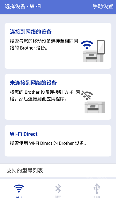 2. 应用程序与打印机的连接可借助Wi-Fi、蓝牙、USB接口,或是直接输入IP地址等多种方式来实现。