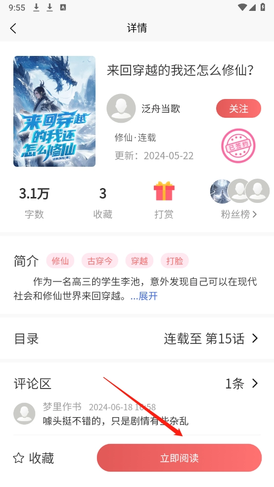 4、挑选自己喜爱的小说资源并打开,点击“立即阅读”按钮就能开始阅读了。