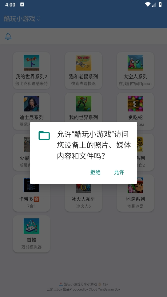 1、在本站安装酷玩小游戏,获取相关的权限。