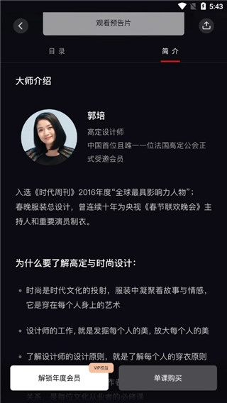 当你挑选自己感兴趣的课程时,能够查看各位大师的个人简介,以及他们针对该课程领域的相关讲解内容。