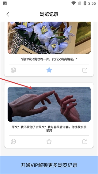 3、进入“浏览记录”页面后,能查看近期浏览过的文案记录,点击相应文案即可。