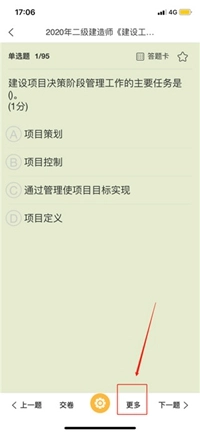 2、在做题界面的最下端找到“更多”按钮并点击,接着点击左下角的图标,此时会出现已加入队列的提示。