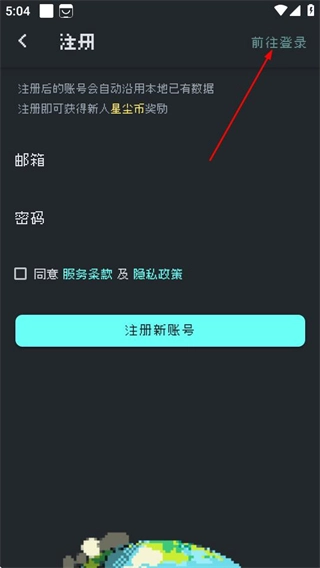 3、在注册页面,点击“前往登录”选项,切换至登录页面。