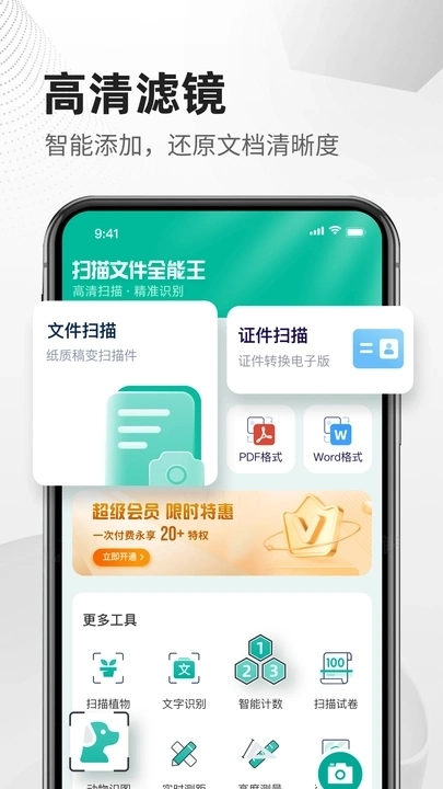 它整合了文件扫描、文字提取、证件处理等多项实用功能,此外还具备动植物识别、物体计数与距离测量的能力,无论是办公场景还是日常生活都能派上用场。