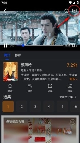 挑选你想看的影视节目,屏幕右上角有个“TV”按钮,点击它就可以了。