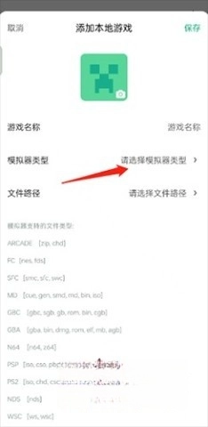3. 填写游戏名称,选定模拟器类型,接着挑选文件路径。