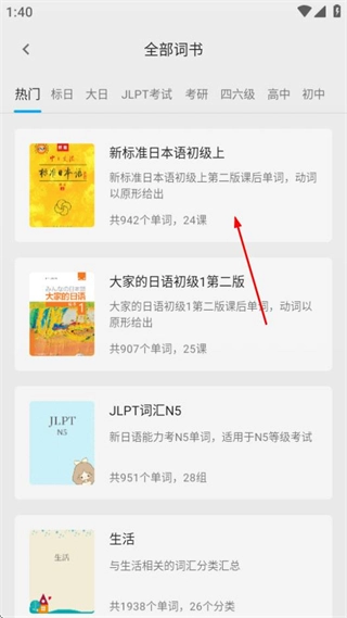 2、在所有词书页面中,点击你感兴趣的词书,就能进入登录页面。