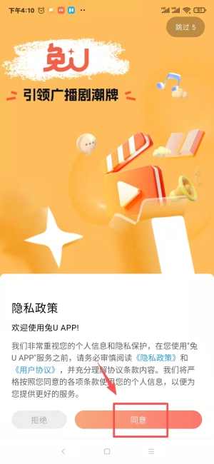 1、首次启动应用,请在隐私政策页面点击同意选项。