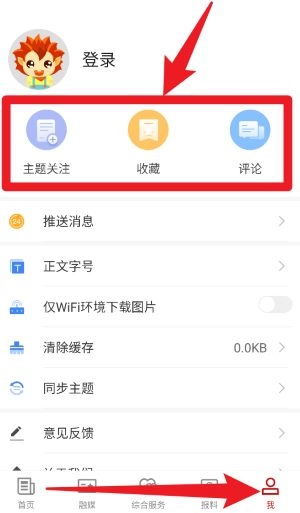 5、进入我的页面,可管理主题关注、收藏与评论等个人内容,并可进行推送设置、缓存清理等个性化操作。