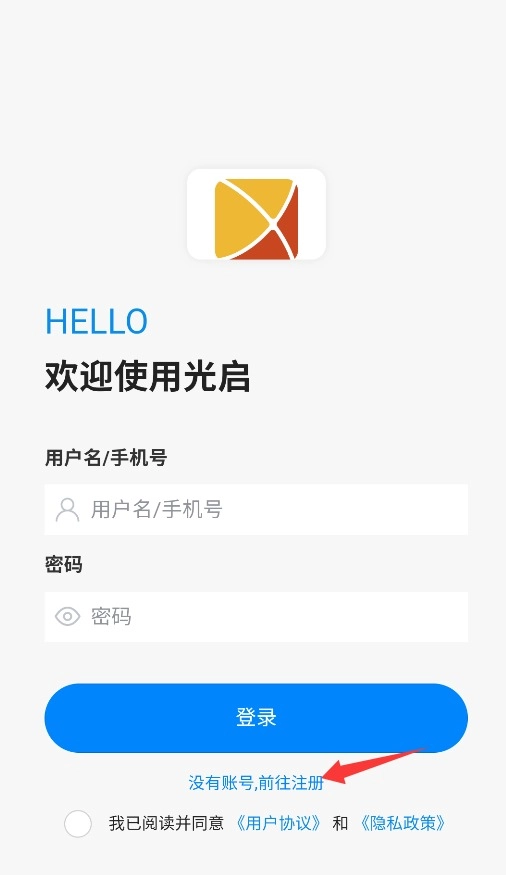 2、登录界面下方设有"前往注册"按钮,点击跳转至注册页面。