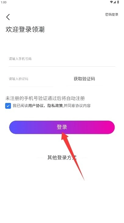 2、于登录页面填写手机号与短信验证码,勾选同意相关协议后,点击登录按钮即可完成登录操作。