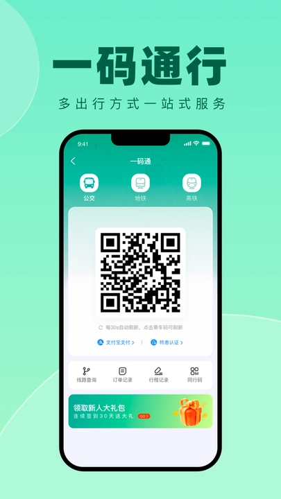 3、通过动态生成加密的乘车二维码,确保每次扫码乘车操作的安全性;