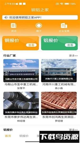 铜铝之家是再循网旗下专注于铜铝行业的移动应用,具备实时报价、供求信息发布、设备交易等功能,能让用户随时把握商机,目前已有大量行业人士在使用。