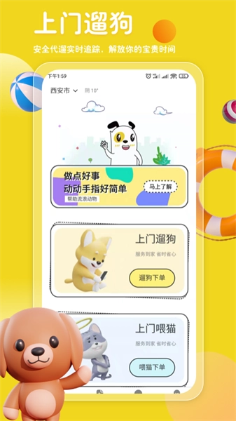 整合全国超5000家认证宠物服务商,覆盖美容、医疗、训练、寄养等全品类服务;上门服务团队均持证上岗,让宠物在家即可享受洗澡美容服务;代遛人员经动物行为学专业培训,服务过程配备实时定位与遛宠轨迹记录功能。