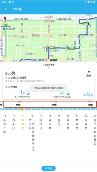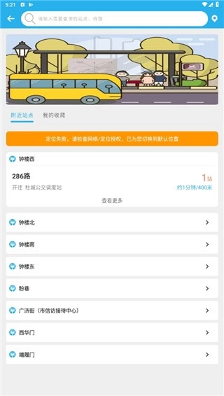 在实时公交功能中,可以看到附近站点的信息