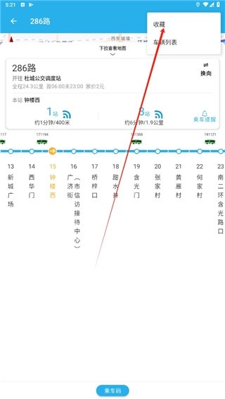 若想把常用的公交线路保存下来,可先找到界面右上角的三点图标并点击,接着在弹出的选项中选择收藏功能即可。